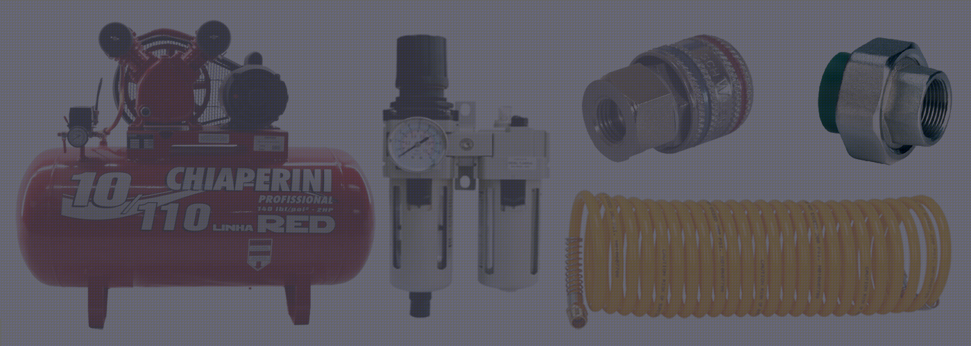 Acessórios para pregador pneumático, pinador pneumático e grampeador pneumático. Conjunto Lubrifil, conexões, mangueira PUN e/ou mangueira espiral, engate rápido e conector de engate rápido; óleo para lubrificar equipamentos pneumáticos. Além desses produtos também vaselina sólida, para uso industrial.